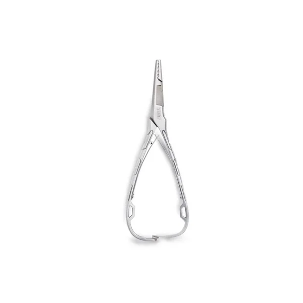 Des forceps à ressort pouvant être utilisés avec des gants épais sans problème. Le cliquet de verrouillage et les mâchoires en dents de scie garantissent une prise en main sécurisée et facilitent son utilisation. Les mâchoires inoxydables comprennent un coupe-fil à la base. Évidemment, aucun gant n’est nécessaire en été pour une utilisation confortable.