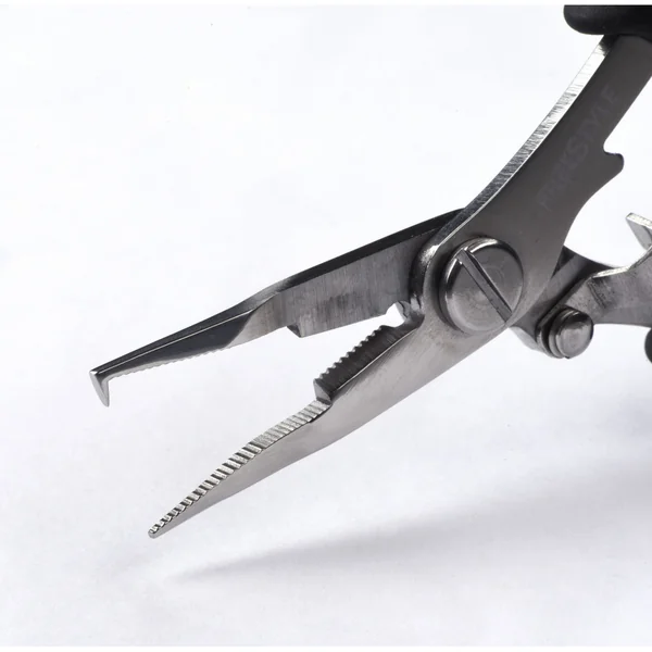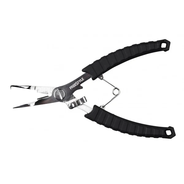 La pince Freestyle Reload Split Ring Pliers est munie d’un ressort et d’un bras de verrouillage pour augmenter sa force de prise et la maintenir. C’est une pince idéale pour refaire vos bas de ligne ou changer les hameçons de vos poissons nageurs. La partie coupe fil très aiguisé saura couper les tresses les plus fines, le fluorocarbone et le monofilament.