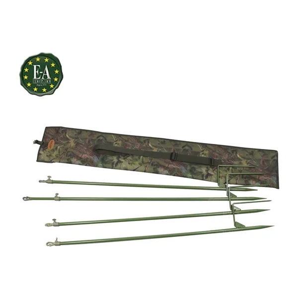 PIQUETS DE HUTTE PAR 4 : Caractéristiques : -Piquets en acier peinture vert de hutte. -Livrés par 4 dans une housse camo.