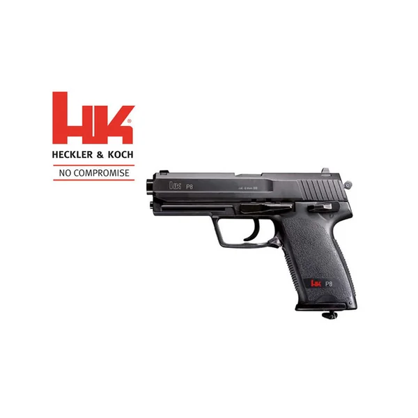 PISTOLET CO2 P8 HECKLER&KOCH : Caractéristiques : -Pistolet à CO2 calibre 6MM, -Longueur : 24.7 cm, -Poids : 566g environ, -Capacité : 25 -Puissance 1.5 joules. Délai Moyen D’expédition : 3 à 5 jours. PISTOLET SOUMISE A LA LEGISLATION : CARTE D’IDENTITE OBLIGATOIRE.