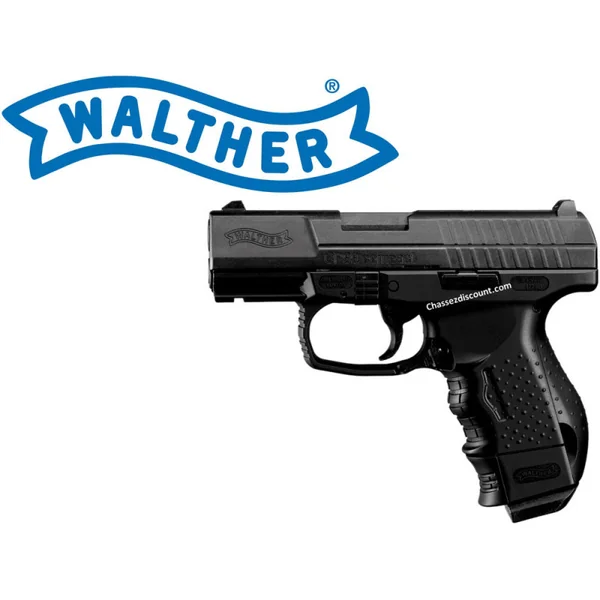 PISTOLET CP 99 COMPACT WALTHER : Caractéristiques : -Pistolet à CO2 calibre 4.5mm, -Longueur : 16.7 cm, -Poids : 755g environ, -Capacité : 18 -Puissance inférieure à 3 joules. *Prix de vente conseillé en 2015 : 130 euros. PISTOLET SOUMISE A LA LEGISLATION : CARTE D’IDENTITE OBLIGATOIRE.