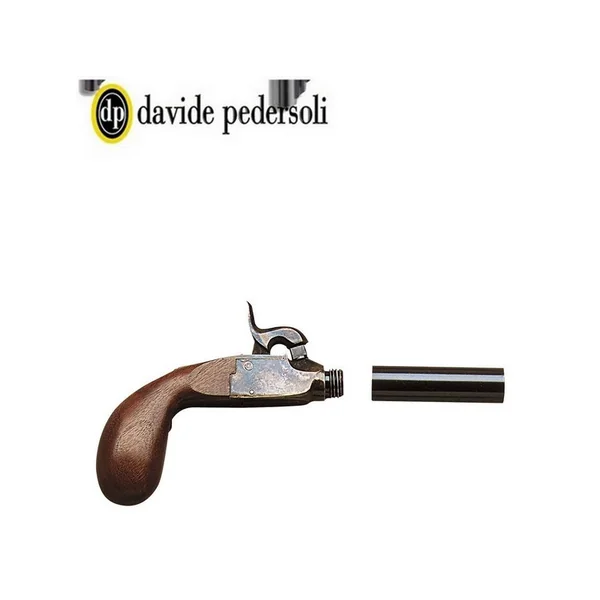 PISTOLET DAVIDE PEDERSOLI DERRINGER LIEGI MODELE STANDARD A PERCUSSION CAL .44 :Caractéristiques :-Cette petite arme, dun maniement facile et précise, nétait pas réservée aux tireurs ou aux aventuriers, elle servait aussi aux plus hautes couches de la société. Avec le canon en acier bronzé, il est muni de détente pliante qui, par un système de percussion interne, lorsque le chien est armé, se déploie prête à fonctionner. La bascule est jaspée et la crosse en noyer.-La bascule est finement gravée selon les modèles originaux, et le métal satiné, sont les caractéristiques principales de la version Luxe.-Parmi les nombreuses copies de Derringer ce modèle fut certainement un de plus populaires de son époque.-Modèle : Derringer Liegi modèle standard (1850) à percussion-Nombre de coup : 1-Rayures : 8 au Pas : 450 mm / 45 cm-Type de balle : .451 round-Code moule à balle : USA 307-451*Caractéristiques Techniques:-Calibre .44-Longueur du canon : 60mm,-Catégorie : D2,-Crosse anglaise,-Finition canon : noir,-Longueur totale : 165mm,-Poids : 190g environ.*ARME SOUMISE A LA LEGISLATION : Carte d’identité OBLIGATOIRES. *AUCUNE LIVRAISON NE POURRA INTERVENIR SANS PIECES JUSTIFICATIVES.