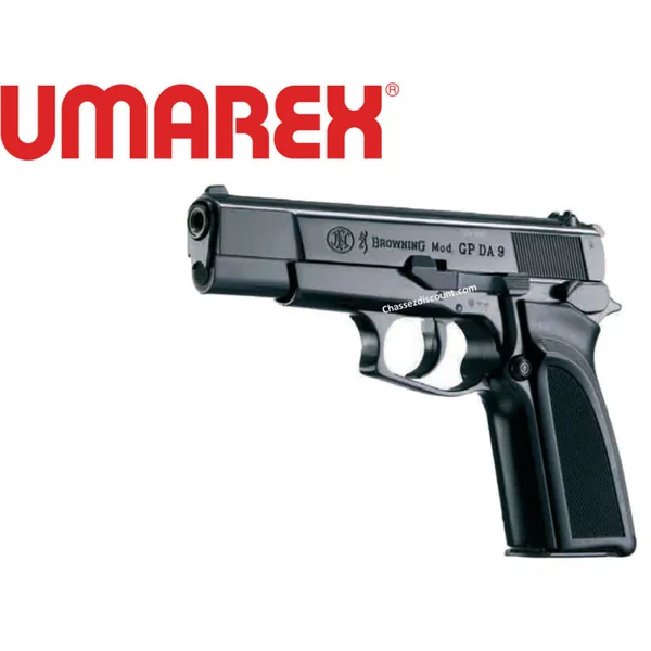 PISTOLET GPDA BROWNING UMAREX : Caractéristiques : -Pistolet de tir à blanc 9mm, -Longueur : 19.4 cm, -Poids : 800g environ, -Capacité : 9 coups. -Monolanceur de fusée 15mm inclu. *Prix de vente conseillé en 2015 : 229 euros. PISTOLET SOUMISE A LA LEGISLATION : CARTE D’IDENTITE OBLIGATOIRE.