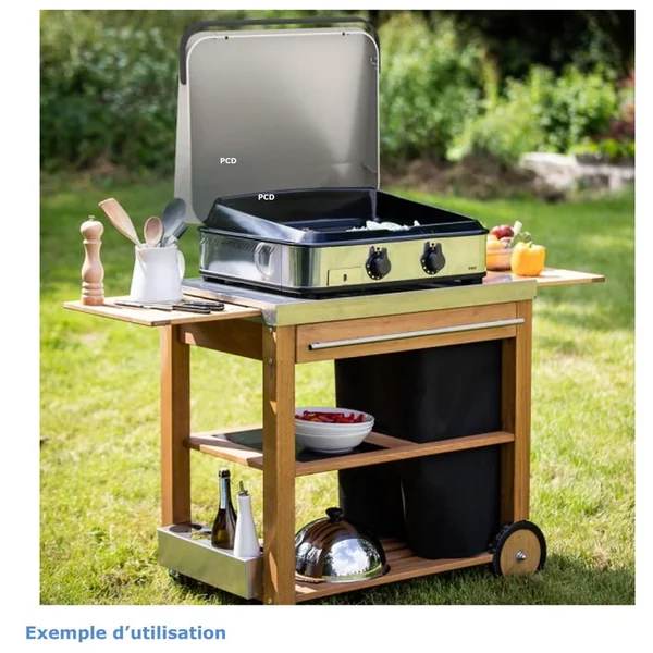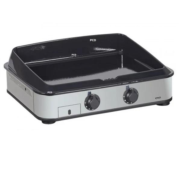 Découvrez cette plancha gaz en inox de la marque française Eno équipée d’une plaque en fonte émaillée avec le trou de récupérateur de graisse qui vous permettra des cuissons de vos mets préférés à la perfection.