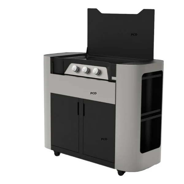 -Rangements dissimulés sous les plateaux latéraux de la plancha.