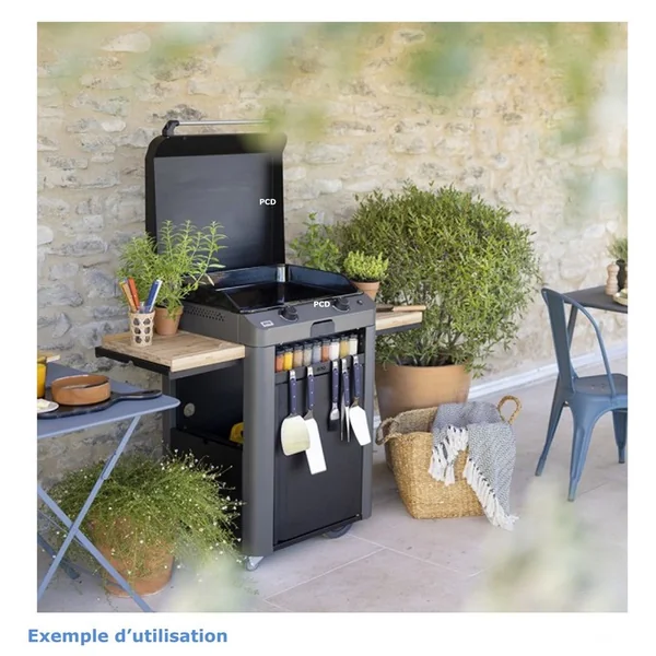 Découvrez cette plancha gaz sur chariot en acier galvanisé thermolaqué de la marque française Eno, équipée d’une plaque en fonte émaillée avec le trou de récupérateur de graisse qui vous permettra des cuissons de vos mets préférés à la perfection.