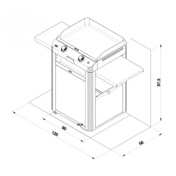 Plancha A Gaz Sur Chariot Eno Combo Enosign 60 Gris Cargo.