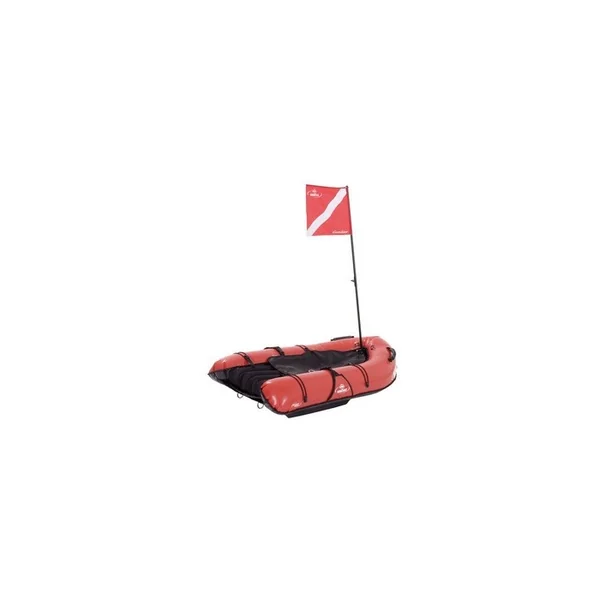 Partie flotteur en double-enveloppe avec un tissu 500 deniers PVC double-enduction rouge de 0.85mm d’épaisseur. Fond en tissu 500 deniers PVC double-enduction noir de 0.85 mm d’épaisseur. Pavillon de plongeur d’une hauteur d’1,2 mètres, avec une structure en 2 parties pour faciliter son rangement 2 sangles de portage permettent de transporter la planche de chasse sur le dos ou à deux.