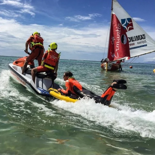 Découvrez le RESCUE SLED de TIKI FACTORY, un outil révolutionnaire conçu pour la sécurité des plages, arrimé à l’arrière d’un jet-ski. Ce produit est le résultat d’un développement collaboratif avec la Société Nationale de Sauvetage en Mer (SNSM) et les services départementaux d’incendie et de secours français (SDIS), garantissant une solution fiable et efficace pour les interventions de sauvetage en mer.