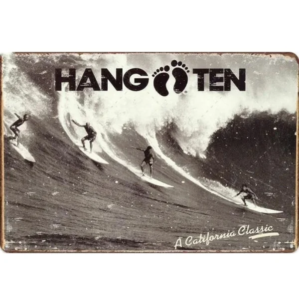 Plaque metal déco Surfpistols Hang ten Plaque métallique décorative pour apporter une touche vintage avec un esprit surf à votre intérieur ou pour offrir en cadeau. Idéale pour créer une ambiance rétro, vintage, industrielle.