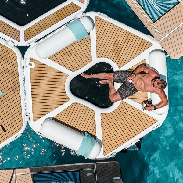- Épaisseur du matériau : Fabriqué avec un Dropstitch de 20 cm d’épaisseur, la plateforme offre une stabilité et une flottabilité incomparables, idéale pour les longues journées en mer.