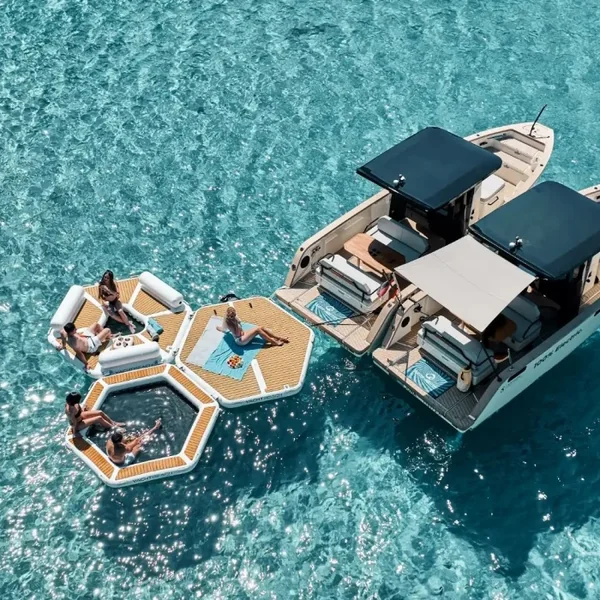 Le Yachtbeach Relax party 2.5 est la solution ultime pour transformer vos journées en mer en moments de détente ou de fête inoubliables. Conçue pour offrir un confort optimal à vos invités, cette plateforme flottante est parfaite pour se relaxer ou organiser des fêtes en toute sérénité.
