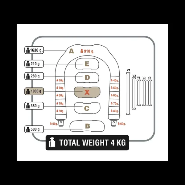 Les segments arrière sont fixés grâce à un système sécurisé, permettant d’atteindre un poids total de 5 kg tout en maintenant une taille compacte et un confort optimal.