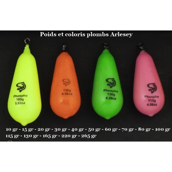 Plombs Arlesey Plastifiés Lemer Jaune Phospho 130 gr Les plombs de surf Lemer