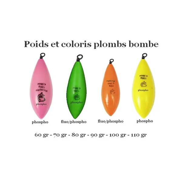Plombs Bombe Plastifiés Lemer Jaune Phospho 110 gr Les plombs de surf Lemer