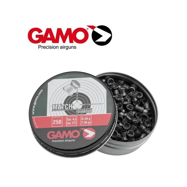 PLOMBS GAMO CLASSIC MATCH PAR 500 : Caractéristiques : -Dune précision et dune exactitude irréprochables, ils seront parfait pour les séances d’entraînement. -Tête plate, -Corps strié, -Calibre : 4.5mm, -Poids : 0.50g, -Boîte de 500 plombs. SOUMIS A LA LEGISLATION : CARTE D’IDENTITE OBLIGATOIRE.