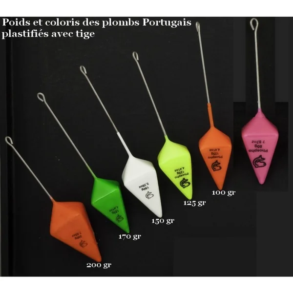 Plombs Portugais + tige Plastifiés Lemer Jaune 200 gr Les plombs de surf Lemer