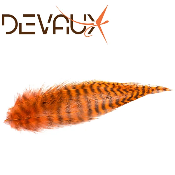 Grandes plumes de coq grizzly, teintées et sélectionnées, idéales pour tous les streamers, notamment pour la réalisation des mouches à brochets.