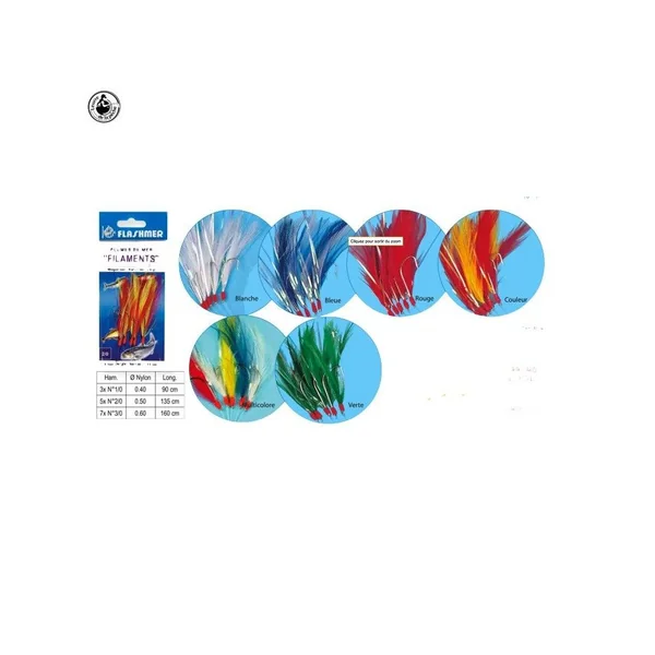 Destinées à la recherche du bar, du lieu ou encore du maquereau, ces plumes sont équipées de la plus petite taille d’hameçon. Le bas de ligne de 40/100 vous permettra d’être discret et de capturer des poissons méfiants. Plusieurs coloris sont disponibles afin de s’adapter au milieu et aux envies des poissons.