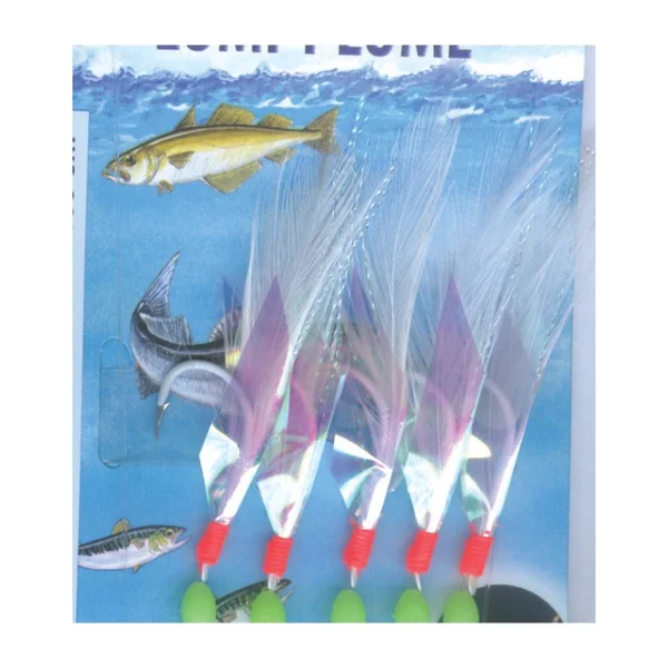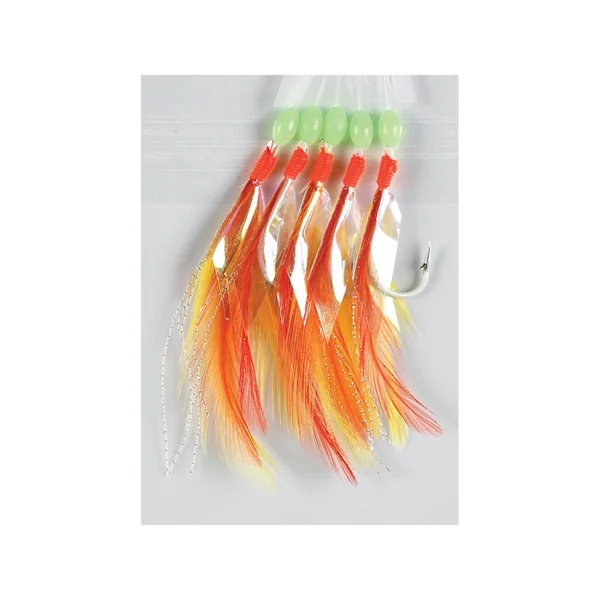 Plumes Flashmer Lumi-Plume Bas de ligne pour la traine et la verticale doté de perles et d’hameçons super phospho