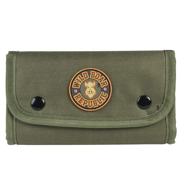 Pochette à rabat 100% polyester, de marque Percussion, avec fermeture par boutons pressions permettant de transporter à la ceinture 20 munitions de tous calibres rayés.