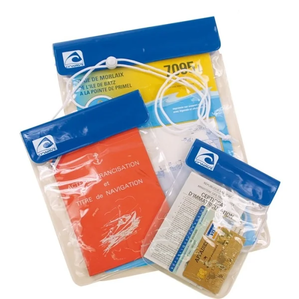 Pochette O’Wave étanche standard pour document Taille L Idéales pour documents, acte de francisation, appareil photo, VHF, téléphone portable, GPS, etc… Plastique translucide soudé. Avis Pochette O’Wave étanche standard pour document Taille L Écrivez votre avis