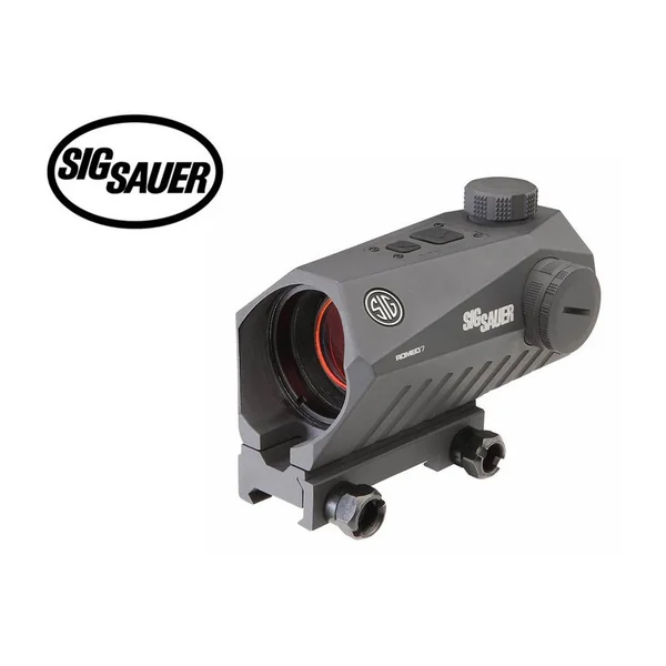 POINT ROUGE ROMEO 7 SIGSAUER 1X30 :*Garantie infinie.-Ce point rouge tubulaire extrêmement robuste est destiné aux tireurs les plus exigeants.-Les commandes sont particulièrement accessibles avec les 2 boutons de réglage de lintensité du point rouge sur le dessus de la carcasse et deux tourelles de réglages largement dimensionnées.-Élaboré en pensant au terrain, ses boutons sont accessibles et la pile peut être changée sans démonter le point rouge.*Caractéristiques Techniques :-Dimension du point rouge : 3 MOA.-Réglage : 1/2 MOA par clic.-Pile : CR2032.*Prix de vente conseillé 2016 : 349€.*Pour les différents montages, nous consulter.