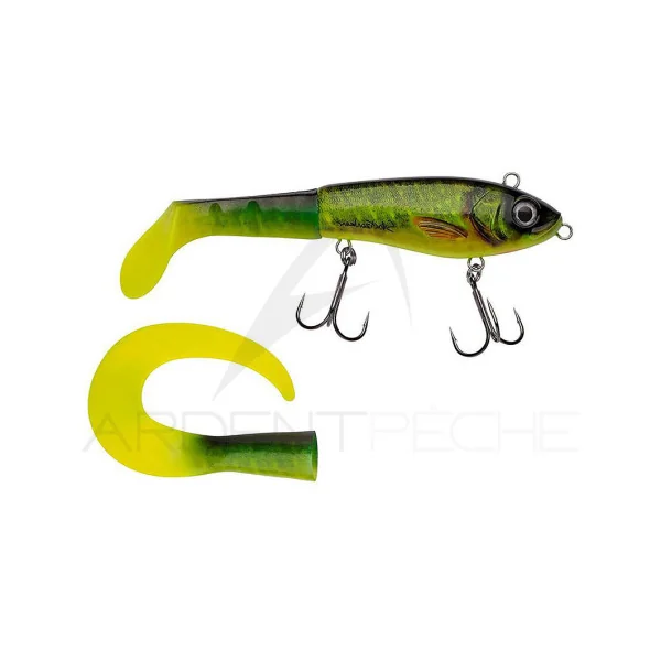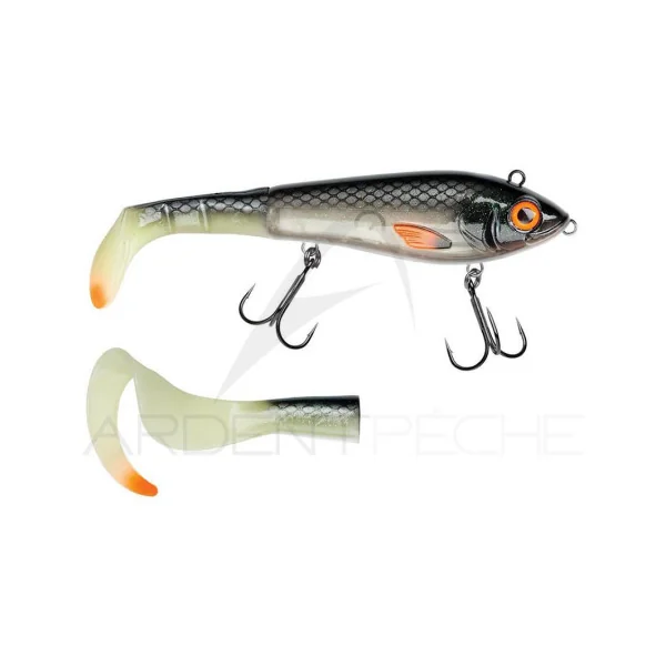 A la fois leurre dur et leurre souple, ce leurre est le premier lipless à avoir un paddle souple. Avec son corps large et ovale, il offre un profil réaliste dune proie. Sa nage unique lui permet dattirer lattention des Brochets. Le McHybrid a deux points de fixations. Si vous lattachez par l’oeillet supérieur, ce leurre nagera plus profondément avec une action idéale pour une prospection optimale. Si vous lattachez par loeillet inférieur, il aura une nage moins agressive et vous permettra de prospecter dans peu deau. Si vous voulez une présentation encore plus douce et sous la surface de leau, changez facilement le paddle du leurre et optez pour la queue souple.