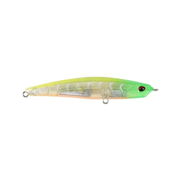 Le Bayruf Seek 85 HW (heavy weight) est un leurre très dense qui coule rapidement dans la couche d’eau. Il est idéal pour peigner des profondeurs de 20 à 80cm. En récupération linéaire, il adopte une nage ondulatoire et effectue de longues embardées latérales avec une animation en « walking the dog». Sa densité lui permet d’être catapulté à très longue distance.