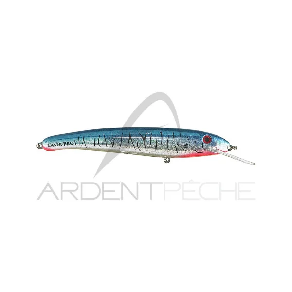 Le Laser Pro bat tous les records de vitesse en encaissant jusqu’à 11 noeuds en traîne ! Cette prouesse le rend redoutable sur les grands prédateurs marins pour lesquels il est armé en conséquence. Avec deux bavettes interchangeables, ce leurre est une référence absolue ! Le nouveau Laserpro 190 XDD sort cette année avec une bavette qui permet de traîner à 13noeuds (maximum) et de le faire descendre à 6 mètres.