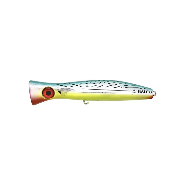 Ce popper de chez Halco est la plus grosse taille construite. En effet, ce Roosta Pop propose des mensurations de 19,5cm pour un poids de 110g. Cela le destine clairement à des pratiques exo, à la recherche de poissons de très belles tailles et d’espèces capables d’engloutir ce genre de leurre.