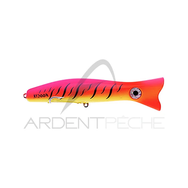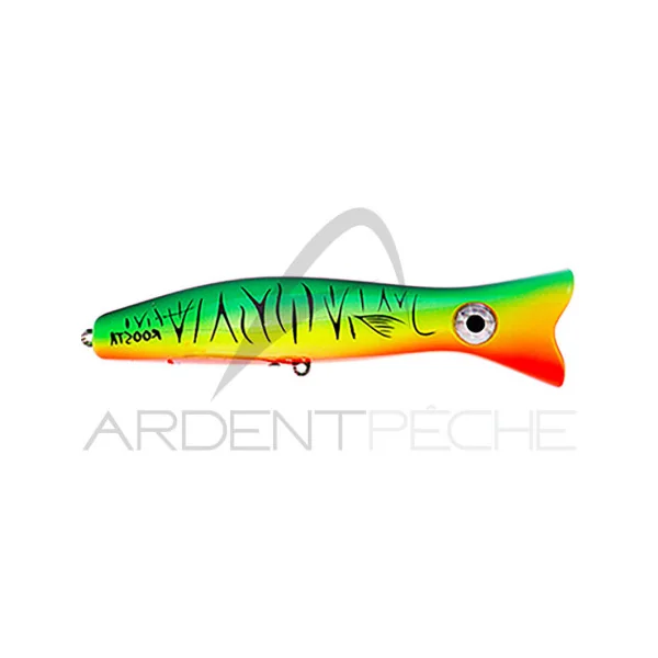 Petite version du Roosta Popper, le modèle 80 se destine aux pêches exotiques en eau douce (peacock bass, aïmaras…) ainsi qu’aux pêches dans l’hexagone (bar, brochet, black bass). Sa faculté à coller à la surface en fait l’un des rares poppers utilisables dans des conditions de vents ou de vagues difficiles.