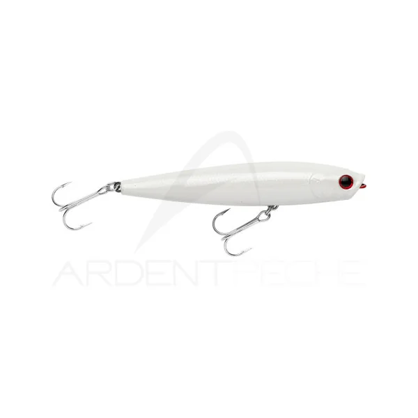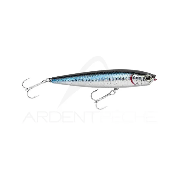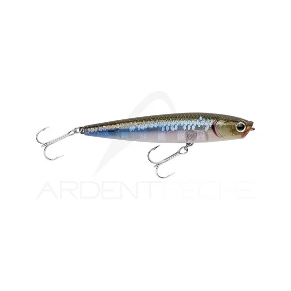 Leurre de surface qui crée un « splash » sonore particulier. Il glisse sur l´eau. Sa nage en « Walking The Dog » est plus serrée, moins ample que celle du sammy. Il peut être lancé à distance grâce à sa forme très aérodynamique et à son lest fait d´une bille résine et tungsten silencieuse. Vous pouvez approcher les postes inaccessibles avec les autres leurres de surface. Le GUNNISH leurre les poissons sans les alerter. Cette version SW (Saltwater/Mer) est équipée d’hameçons étamés.