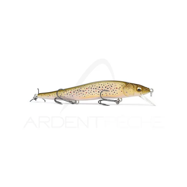 Le Great Hunting 110 est un jerkbait minnow slow floating conçu pour la traque de la truite dans les grands milieux. Son centre de gravité en tungstène ultra dense lui procure une réactivité importante avec des changements de trajectoire précis lors des animations. Sa densité lui permet également dêtre catapulté à très longue distance, même par vent de face, pour atteindre des postes jusqualors jamais pêchés car trop éloignés.