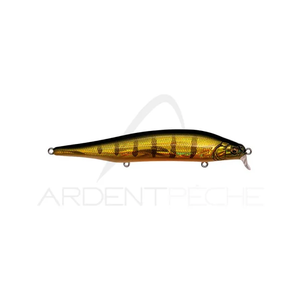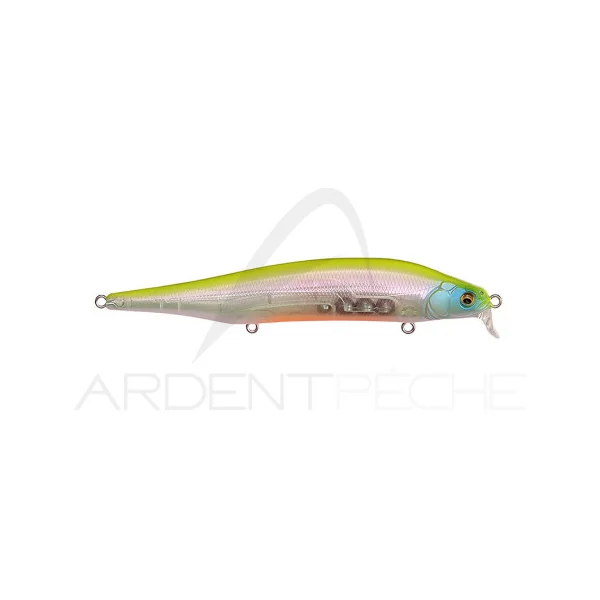 LITO SHINER SSR est un jerkbait dont la profondeur de nage maximale est d’environ 50 à 70 cm maximum pour peigner efficacement le dessus des obstacles ou des herbiers. La forme atypiquement large de sa bavette lui permet dadopter une nage dynamique avec une action de rolling à haute fréquence en émettant davantage de flashs lumineux quun jerkbait classique afin daugmenter son attractivité. Il est équipé d’un système d’équilibrage composé de trois petites billes mobiles en tungstène qui orientent son centre de gravité vers le bas pour assurer une mise en mouvement rapide et un parfait équilibrage pendant les animations et les pauses.