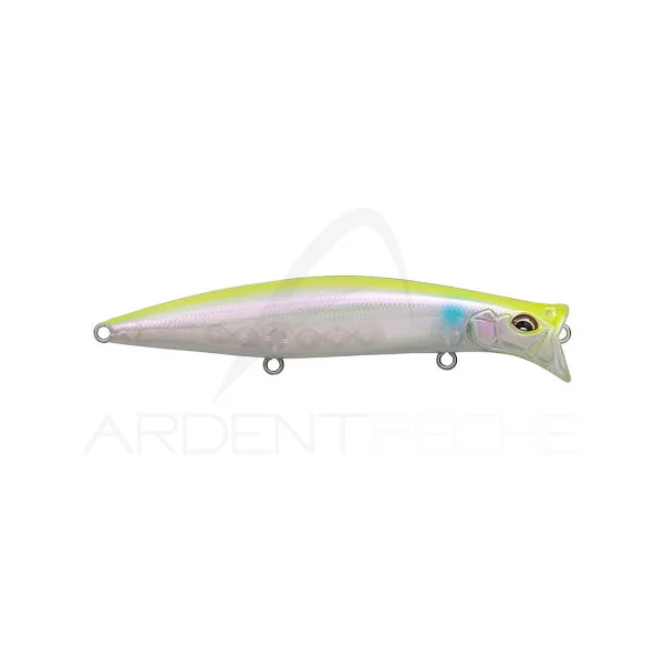 Le Kirinji 90 est un leurre de type wakebait qui évolue jusquà 10cm sous la surface. Sa tête hydrodynamique présente des cavités qui laissent passer leau en créant des actions de wobbling et de rolling très prononcées sans trop tirer dans la canne. La forme concave de sa tête lui donne également la possibilité dêtre utilisé comme un popper. Le mécanisme de passage de leau génère ainsi des gerbes deau associées à des formations de bulles qui attirent de loin les prédateurs à laffût. Très stable, sa forme particulière lui permet de rester efficace dans les vagues et les courants à nimporte quelle vitesse de récupération.