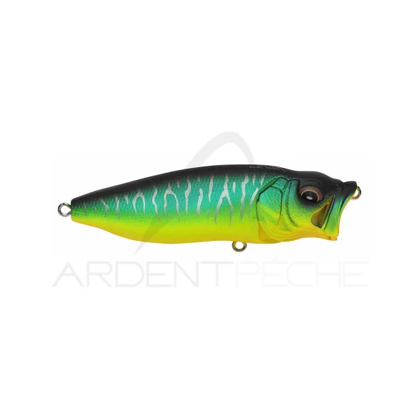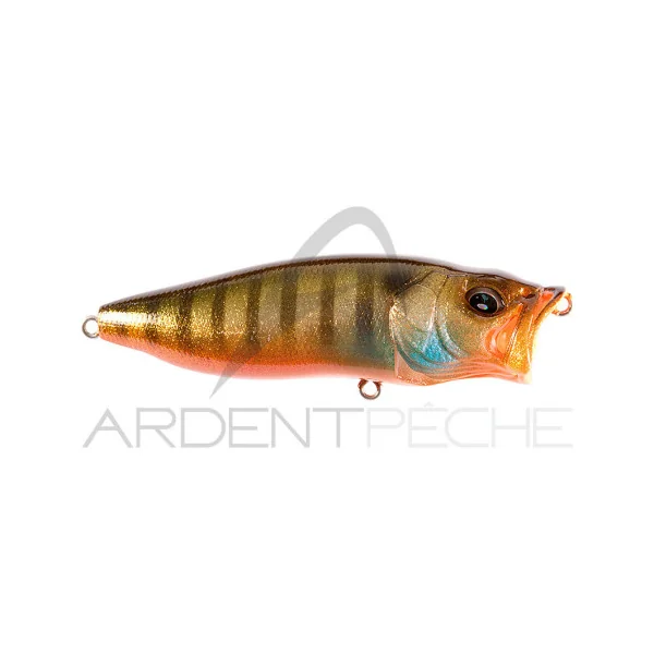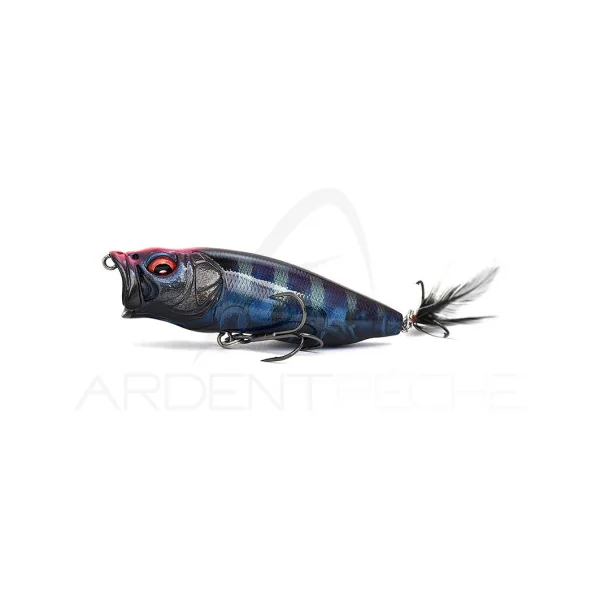 Pour les inconditionnels du leurre de surface, voici le popper « revisé » : le POP MAX de chez Mégabass. On croyait effectivement avoir fait le tour de ce type de leurre conçu pour provoquer un maximum de remue-ménage à la surface d’une eau généralement assez calme. C´était sans compter sur ce modèle qui développe un tout nouveau concept : celui d’un siphon placé au niveau des ouïes. Lors de la tirée brutale de la ligne, l’eau s´engouffre par la gueule proéminente du popper pour ensuite ressortir en force par des ouïes artificielles. Le résultat ‘ Une combinaison étonnante de bouillons sonores et de chapelets de bulles, le tout dans une nage qui n´est pas sans rappeler celle d’un stick-bait classique.