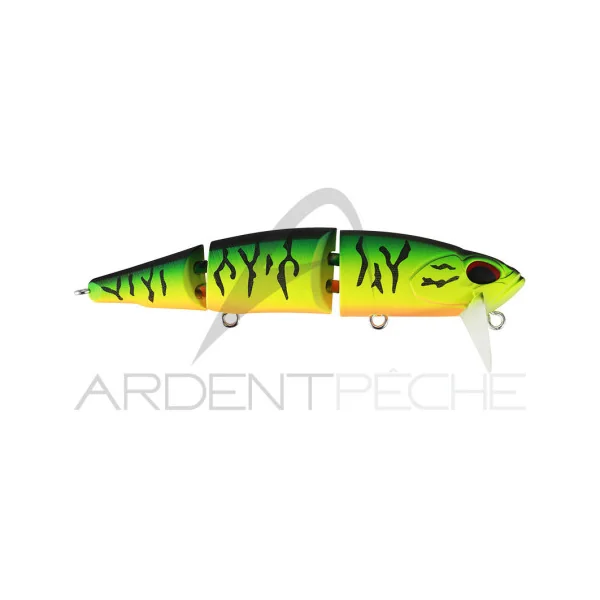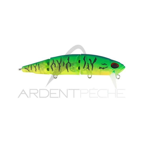 Le poisson nageur Rozante Perj 95 F se distingue par sa conception articulée montée sur émerillons barils. Ce système offre une liberté de mouvement maximale entre les segments, générant une nage fluide et particulièrement réaliste.