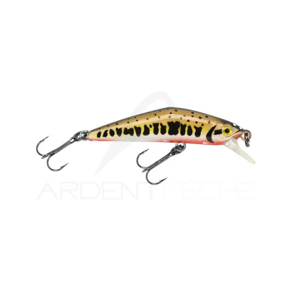 Un concentré de technologie permettant la pêche amont et aval en petites et moyennes rivières, il saura séduire les truites même en périodes détiages. Des coups de scions latéraux et twitch courts déclencheront les attaques.