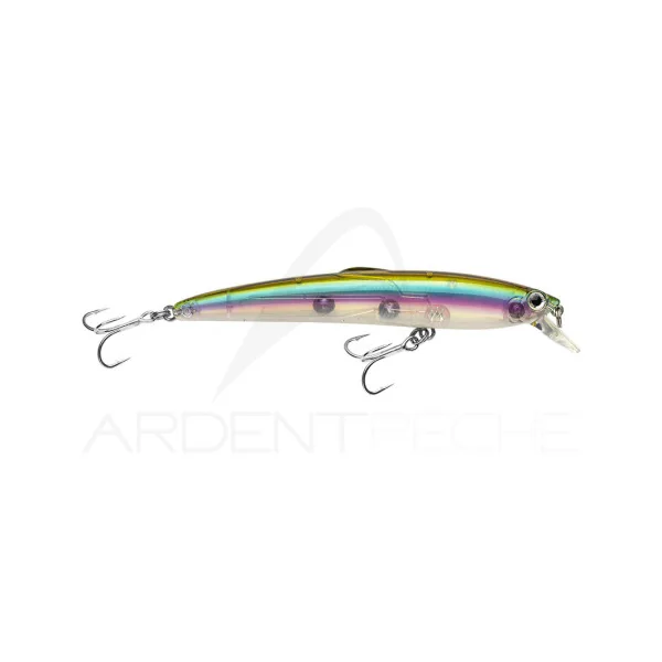 Un jerkbait minnow qui se catapulte à longue distance grâce à son système de transfert de masse qui occupe toute la longueur de son corps mais aussi à sa petite nageoire qui stabilise son vol. Sa nage est un mélange de wobbling et de rolling et il à parfaitement à l’aise pour les pêches du bar du bord.