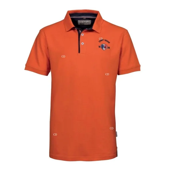 Intérieur du col, patte de col et intérieur de la patte de boutonnage en couleur contrastée.