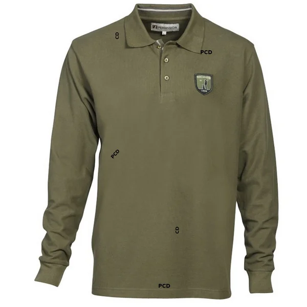 Le polo manches longues brodé Percussion, de marque Percussion, rassemble des vêtements de traque.