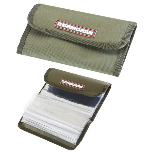 Porte-Feuille Cormoran Modèle 3026 Pochette contenant 10 sacs transparents permettant de ranger des montages et des bas de ligne, disposés individuellement grâce à des fermetures zippées.
