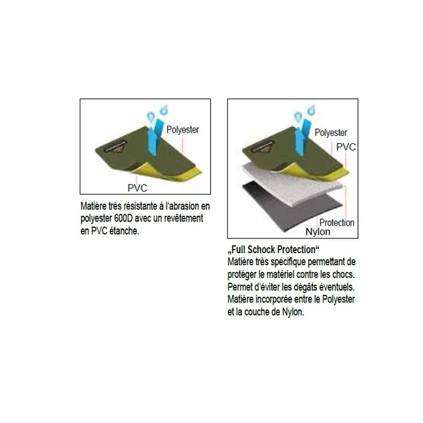 Matériaux : 100% polyester (600D, revêtement en PVC)