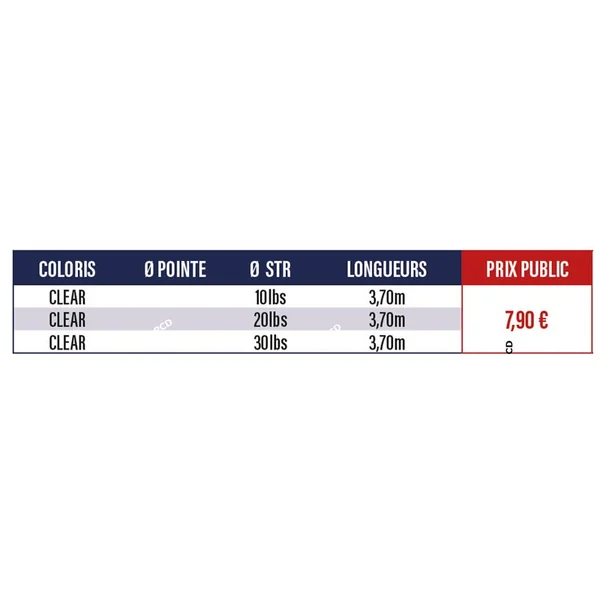 -Disponible en 3 résistances différentes : 10lbs, 20lbs et 30 lbs.
