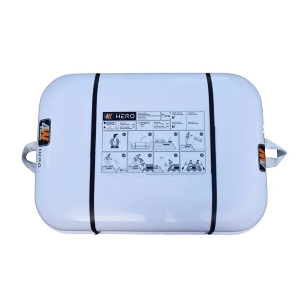 Ce radeau de survie est structuré par 3 compartiments gonflables indépendants fabriqués en caoutchouc : deux flotteurs et un arceau, équipés de valve anti-retour.