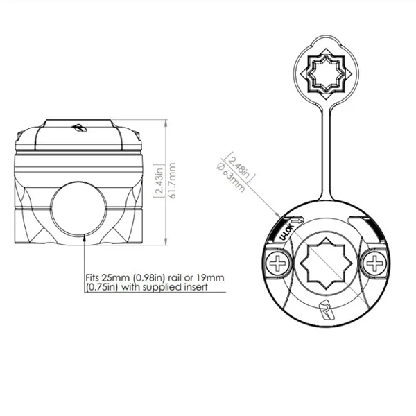 Cet adaptateur vous offre la possibilité de fixer le receveur sur un tube de 19-25mm de diamètre, créant ainsi des nouveaux emplacements pour les accessoires Railblaza.