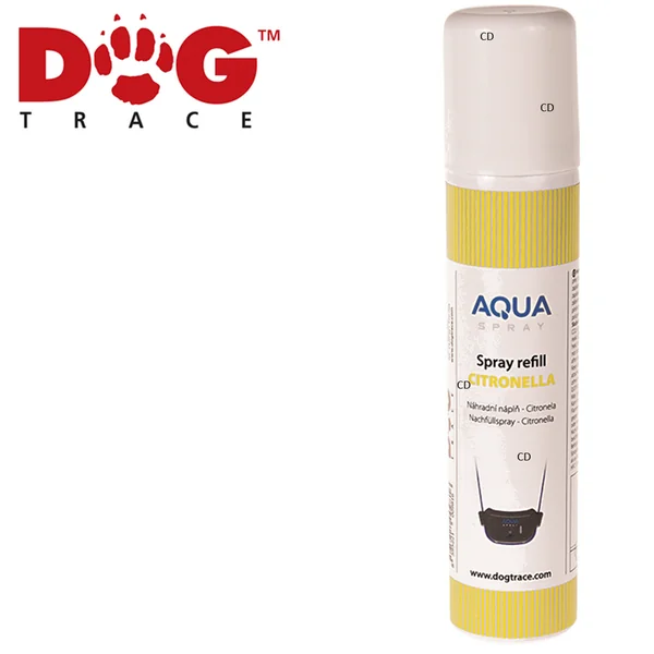 RECHARGE DOG TRACE CITRONNELLE POUR COLLIER AQUA SPRAY :Caractéristiques :-Recharge de marque Dog Trace, senteur citronnelle, pour le collier Aqua Spray.-Contenance : 75ml.*En savoir plus sur le collier Dog trace Aqua Spray D-Control 300 ou 900 :-Pour les petits et grands chiens !-Une nouvelle génération de colliers de dressage est née chez DogTrace.-Plus respectueux du bien-être animal, les colliers de pulvérisation Aqua Spray D-control sont efficaces à une portée maximum de 300 ou 900 mètres (selon le modèle).*Trois modes de correction sont sélectionnables grâce à la télécommande :1-Signal sonore : permet d’avertir une première fois le chien d’un mauvais comportement.2-Vibration : permet d’indiquer au chien que l’ordre demandé n’a toujours pas été appliqué.3-Spray : il s’agit du dernier niveau de correction, le collier pulvérise un spray frais désagréable sous le museau du chien pour le corriger après un comportement inapproprié et répété.-Trois solutions de 75 ml sont disponibles dans la gamme : citronnelle, lavande ou sans parfum.-En fonction de la taille de votre chien, la pulvérisation peut être courte (5 niveaux) et longue (10 niveaux).-L’aérosol de 75ml permet jusqu’à 300 corrections de pulvérisation.*DANGER ! Aérosol extrêmement inflammable.Bien lire les précautions demploi avant usage.
