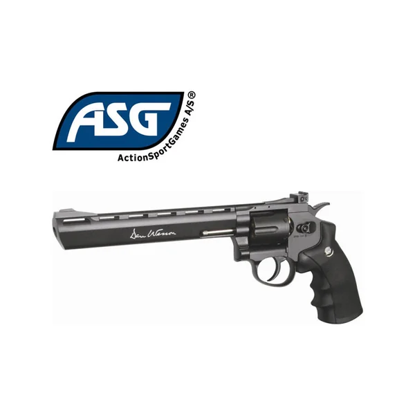 REVOLVER CO2 DAN WESSON 8 POUCES NOIR : Caractéristiques : -REVOLVER à CO2 calibre 6MM à douilles, -Longueur : 33.8 cm, -Poids : 1040g environ, -Capacité : 6 -Puissance 1 joules. REVOLVER SOUMIS A LA LEGISLATION : CARTE D’IDENTITE OBLIGATOIRE.