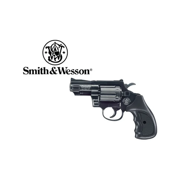 REVOLVER GRIZZLY SMITH & WESSON : Caractéristiques : -Pistolet de tir à blanc 9mm, -Longueur : 17.5 cm, -Poids : 615 g, -Capacité : 6 coups. -Monolanceur de fusée 15mm inclu. *Prix de vente conseillé en 2015 : 205 euros. PISTOLET SOUMISE A LA LEGISLATION : CARTE D’IDENTITE OBLIGATOIRE.